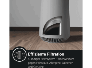 Der Luftreiniger AEG AX31-201GY in Hellgrau reinigt die Luft effizient in Räumen bis zu 40 m³ bei nur 20 Watt Leistungsaufnahme. Sein 4-stufiges Filtersystem fängt Staub, Allergene und Gerüche zuverlässig ab und sorgt für spürbar frischere Luft.