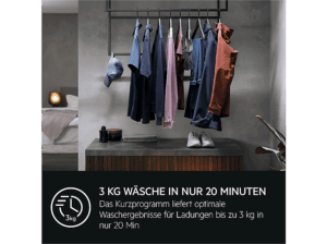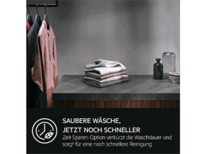 - ProSense® Mengenautomatik: passt Laufzeit und Wasserverbrauch automatisch an die Trommelbeladung an