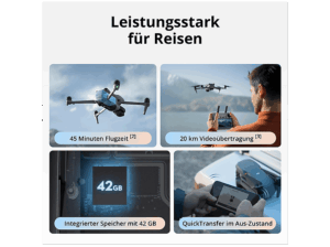 - Lange Flugzeit: Bis zu rund 46 Minuten Flugzeit pro Akku für ausgedehnte Aufnahmen.