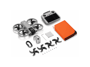 Die graue DJI Avata 360 mit DJI RC 2 bietet Dir agile FPV-Flugeigenschaften und eine stabilisierte Kamera in einem robusten, geschützten Gehäuse — ideal für dynamische Luftaufnahmen drinnen und draußen.