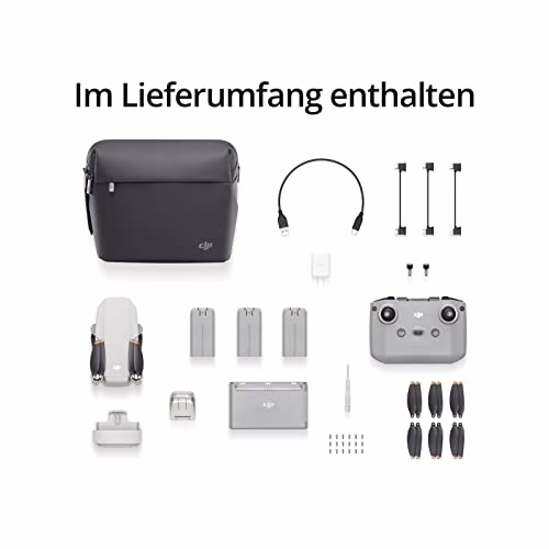 - Fly More Combo Zubehör: mehrere Intelligent Flight Batteries, Lade‑Hub, Ersatzpropeller, Tragetasche, USB‑C‑Kabel und Akku‑Powerbank‑Adapter – für längere Einsätze ohne Unterbrechung