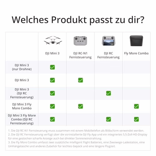 - Kompatibel mit der DJI RC-N1 oder DJI RC Fernsteuerung, je nach Set-Ausführung