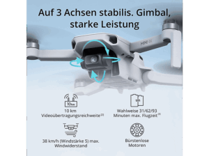 - Bis zu 31 Minuten Flugzeit (unter optimalen Bedingungen)