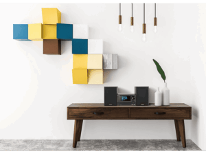 - Kompaktes Gehäuse in Schwarz, platzsparend für Regal oder Sideboard