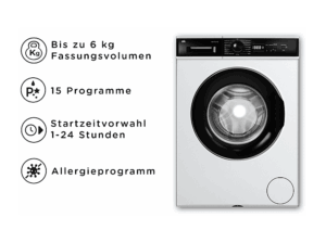 - Kompakte Bauweise und einfache Bedienung, geeignet für tägliche Waschladungen
