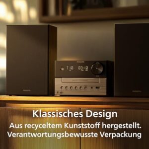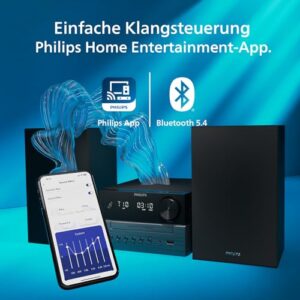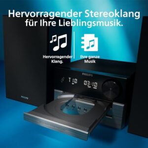 Kompaktes Mikro-HiFi-System von PHILIPS: Das Modell TAM3505M2/12 in Schwarz vereint klassische und moderne Wiedergabemöglichkeiten in einem schlanken Design — ideal, wenn Du CD‑Sammlungen, digitale Musik und Radio unkompliziert genießen willst.