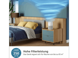 Hinweis: Dieses Gerät kombiniert platzsparendes Design und ein effektives Filtersystem für den täglichen Einsatz in Wohn- und Schlafräumen.