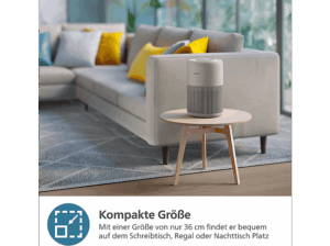 Der kompakte Luftreiniger PHILIPS AC0921/14 PureProtect Mini 900 Series in beige bietet dir effiziente Luftreinigung für kleinere bis mittlere Räume – leistungsstark bei gleichzeitig geringem Stromverbrauch.