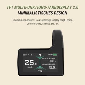 - Integriertes Display/Bedienelement zur Steuerung der Unterstützungsstufen und Anzeige wichtiger Fahrdaten